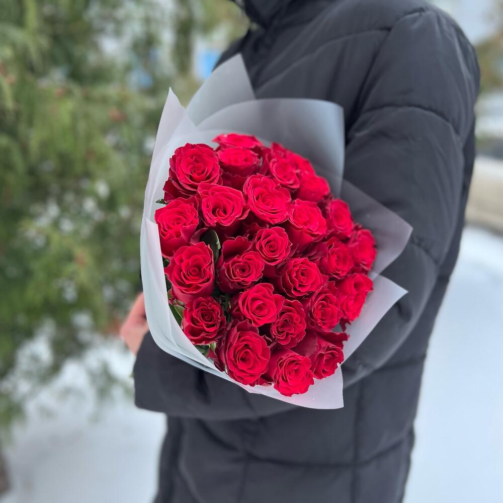 Роза красная 40 см – 25 шт.Пленка матовая – 2 шт.