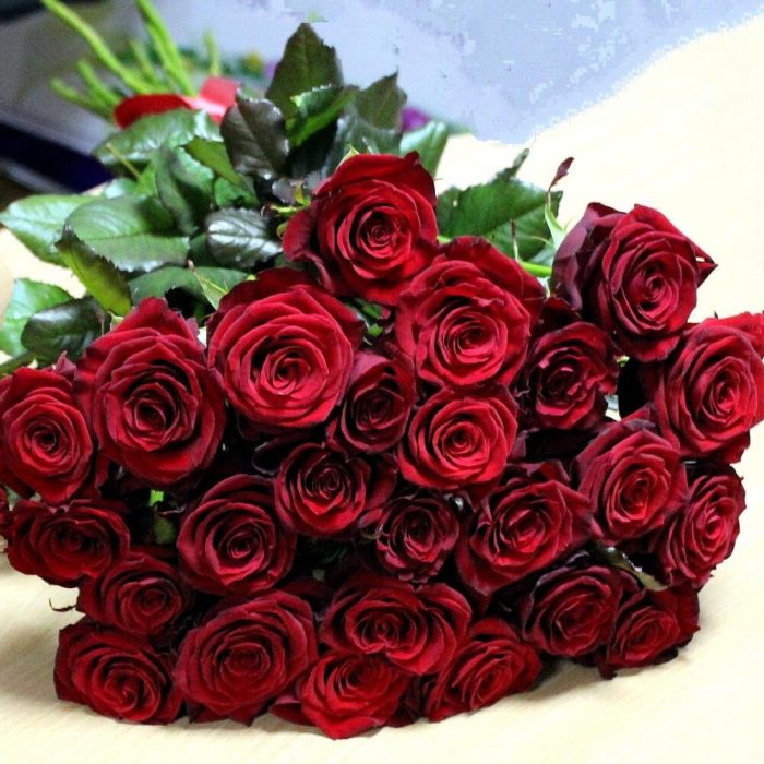 Метки: 25 роз, Красные розы, от 3000 до 4000 руб, Роза 60 см